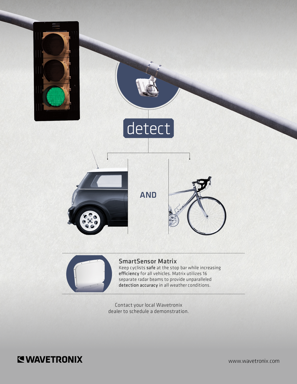 One-sheet advertisement/print-design focusing on the detection of bicycles at the intersection.