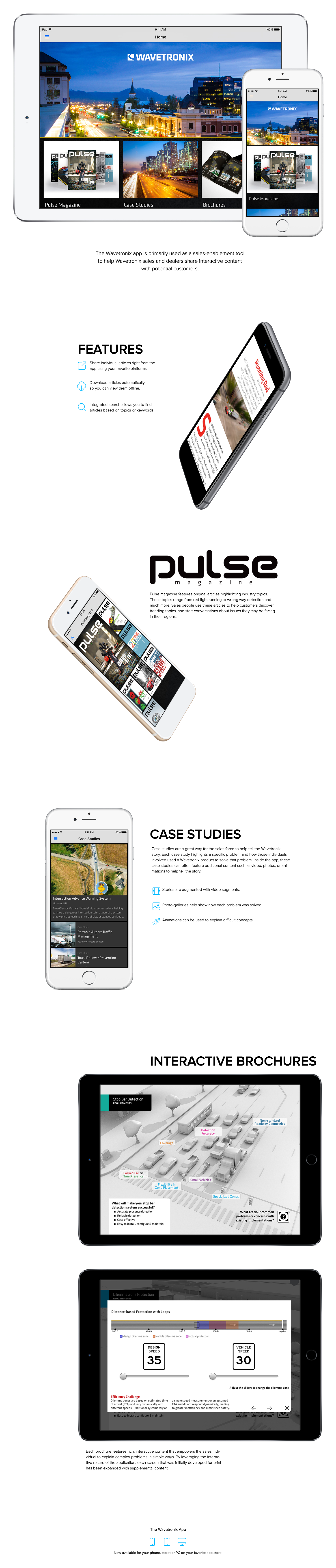 The Wavetronix app is a multi-device application used to publish content for Wavetronix. This content includes a quarterly magazine, case studies and informational brochures about the company.